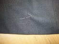 オーダー種別:かけつぎ修理 生地: 型: 価格: 説明:引っ掛けてかぎ裂きに破れたパンツの修理前と修理後