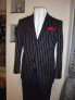 オーダー種別:オーダー 生地:国産 ラナモード 型:ピークラペルスーツ(8208) 価格:¥48,000(税別) 説明:ウール70% ポリ30% ブルーグレーにストライプ柄スーツ 衿はピークラペル