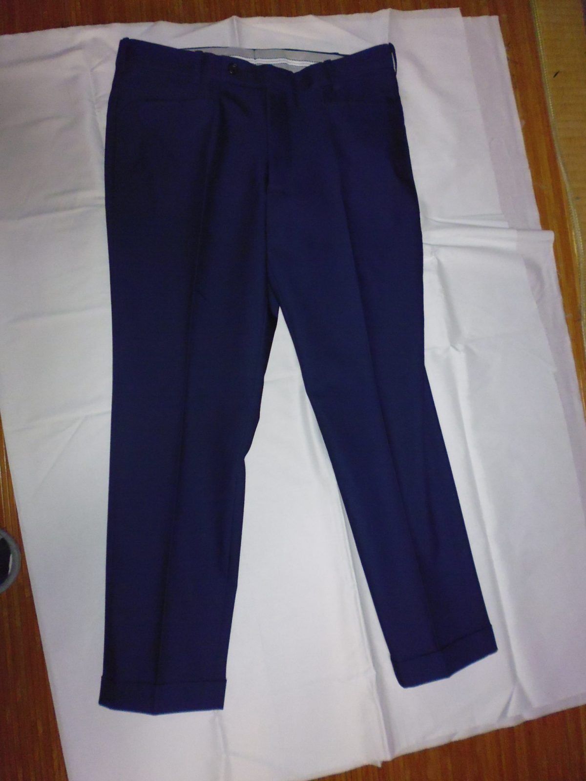 オーダー種別:オーダー 生地:国産 型:替えズボン(8140) 価格:¥23,000(税別) 説明:コットン62% ポリ38% コットンツイルストレッチ ネイビーブルーパンツ